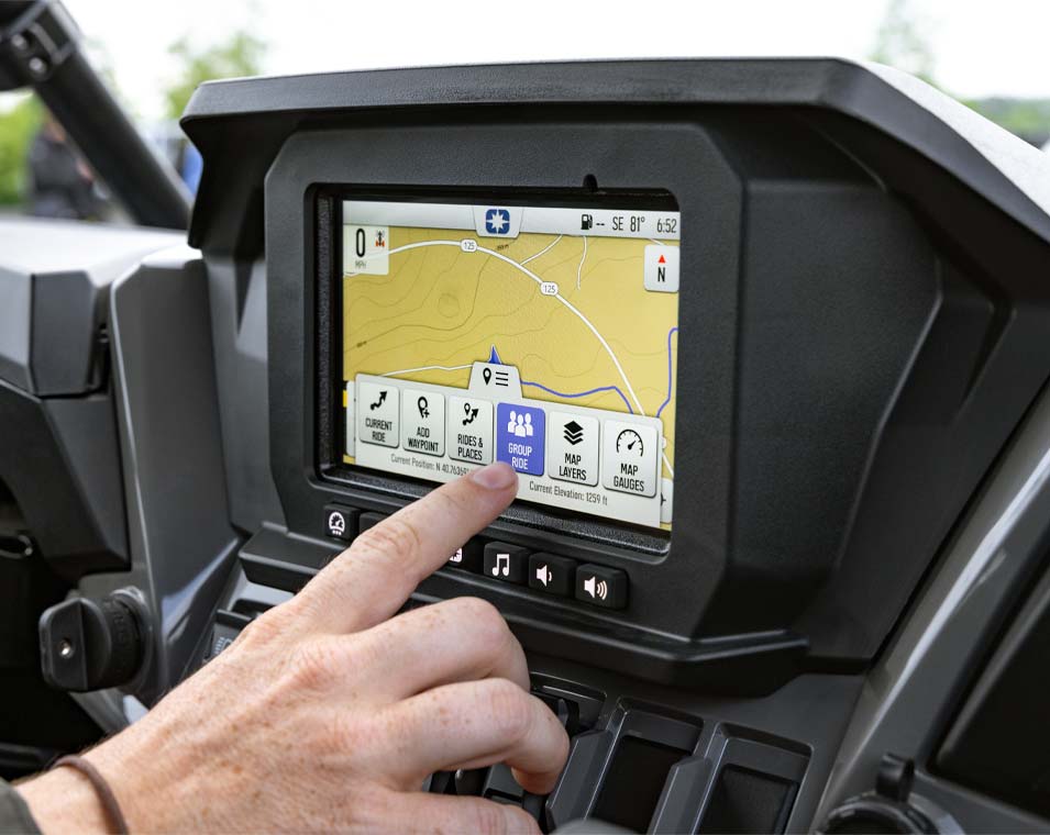 - Pantalla RIDE COMMAND de 7": Cámara Trasera, Instrumentación Digital, GPS Incorporado, Group Ride (Basado en Celular o GPS), Mapa Topográfico, Conectividad para Smartphone USB & Bluetooth, Radio Meteorológica & AM/FM (Sistema de Audio se vende por separado), Capacidad de Comunicación dentro del Vehículo con Auriculares Sena.
